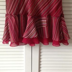 Beautiful pink striped skirt from The Limited. It is fitted through the hips & flowy on the bottom! great for work or a night out! Shell: 100% silk/ Lining: 100% polyester
