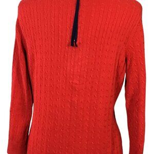 The Limited 3/4 Sleeve Back Zip Red Cable Knit Stretch Pullover Sweater XL