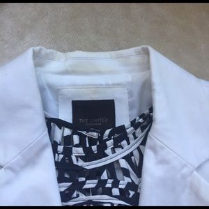 Great white jacket for spring! 3/4 length sleeves. Slightly yellow on neckline but not noticeable when worn. May come out if dry cleaned. Worn once and has been hanging in my closet. Priced accordingly.