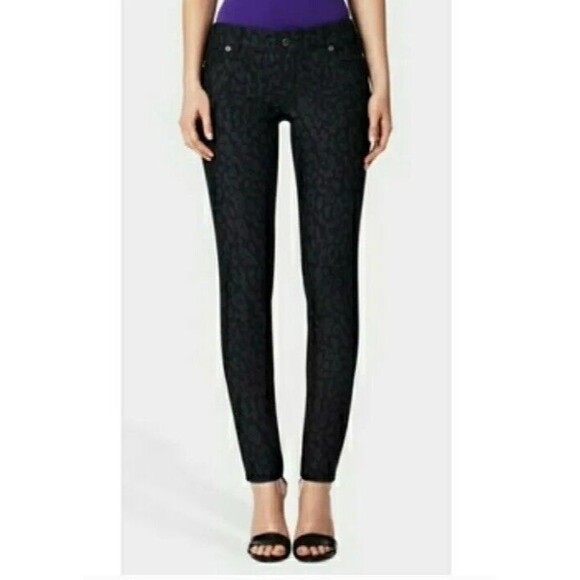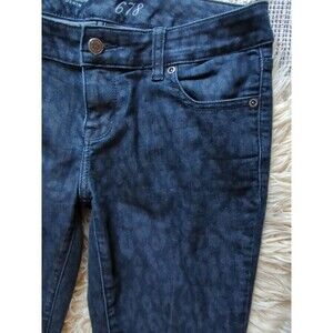 The Limited 678 Dark Wash Denim Leopard Print Jeans Sz 4 Skinny Straight Stretch