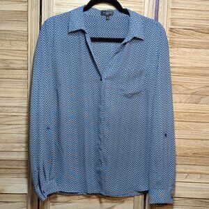 The Limited ASHTON Blue Chevron Pattern Blouse Size Large