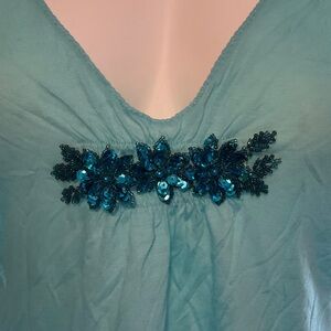 The Limited Aqua V-Neck Blouse with Embellishments