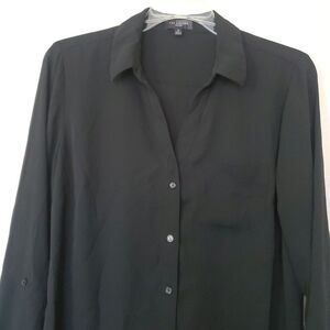 The Limited Ashton Button Down Blouse Adjustable Sleeve Length Black Womens Sz M