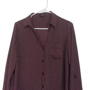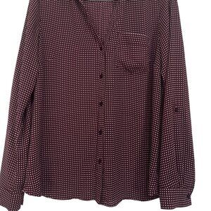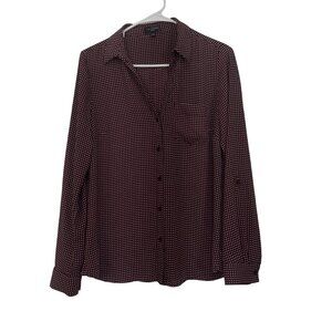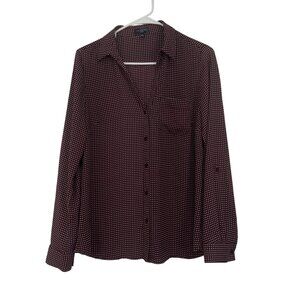 The Limited Ashton Women SZ M Maroon & White Polka Dot Button-Up Shirt Blouse