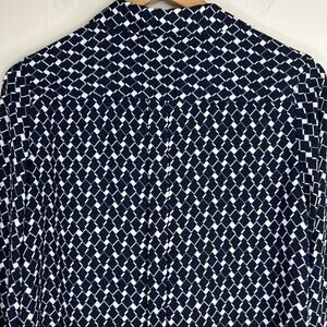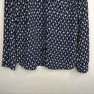 The Limited Ashton blouse M navy blue white geometric button front tab sleeve