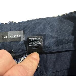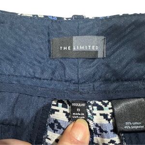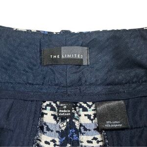 These stylish shorts from The Limited feature a unique Aztec tribal design in white and blue tweed. The shorts are a size 8 with a flat front and mid-rise waist of 35 inches. The closure is a convenient zip and there are back pockets for added functionality.
