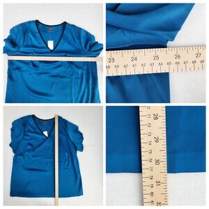 The Limited Beaded Tulip Sleeve Blouse Beaded Neckline Size 1X Mykonos Blue New