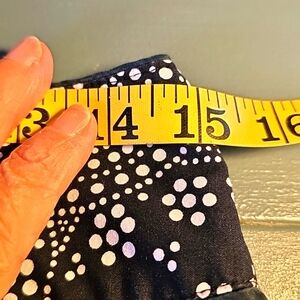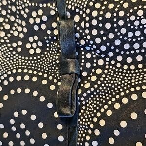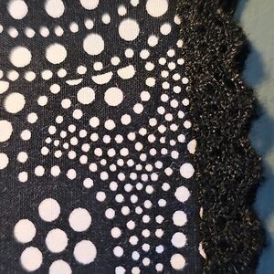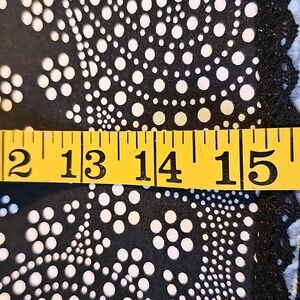This chic black cotton mini skirt from The Limited features a sophisticated a-line silhouette, perfect for a night out or cocktail event. The intricate paisley and dotted pattern adds a touch of elegance, while the fitted waistband ensures a flattering fit. Its subtle sheen enhances the overall allure, making it a standout piece in any wardrobe. trimed in lace. Size 4. measurements are in photos. Consider making a bundle and get an even better offer and save on shipping.