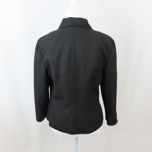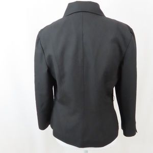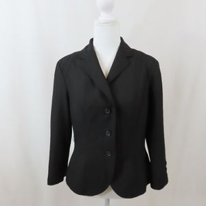 Very nice dark black blazer/jacket by The Limited. Jacket is very black, NOT faded, and slightly stretchy. Has buttons on sleeves and in front. No shoulder padding. See photos for details. Size 6.