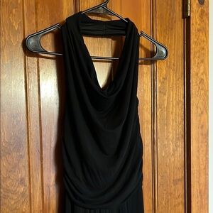 This elegant black gown by The Limited is designed for cocktail occasions, featuring a sleeveless halter neckline that exudes sophistication. The maxi length and flowing silhouette create a graceful and timeless look, perfect for a night out. Crafted from a fabric with a subtle sheen, it adds a touch of glamour to any evening event.