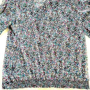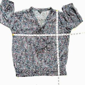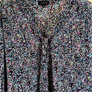 The Limited Black Multicolor Sheer Tie Front Three Quarter Length Sleeve