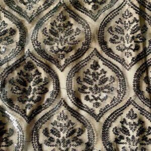 Party top from The Limited featuring a sheer overlay with velvet-inspired flocking and shimmering sequins in a damask-style pattern. Elegant yet edgy — perfect for parties, concerts, date nights, or holiday events.