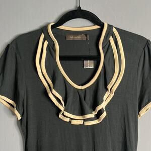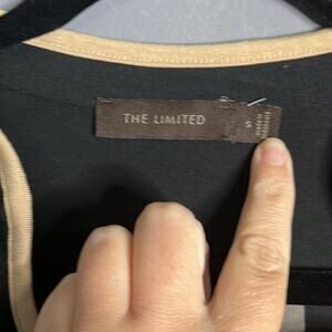 The Limited Black Short Sleeve Top Ruffle Neckline With Tan Trim Size Small