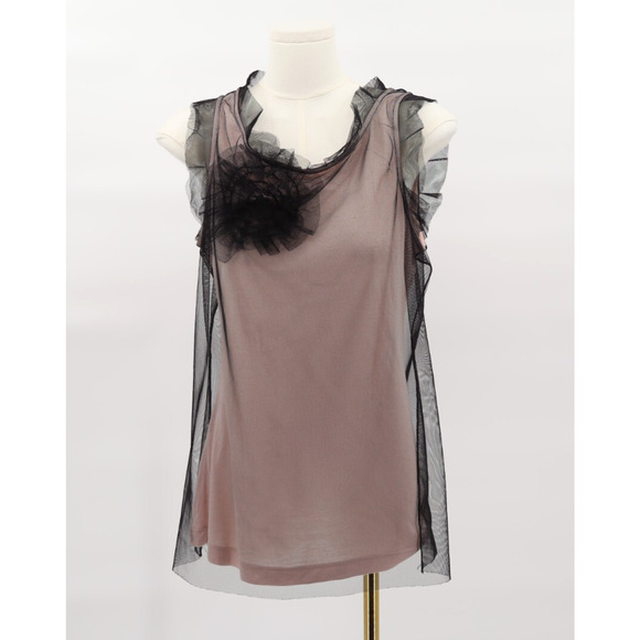 The Limited Black Tulle Rosette Accent Embellished Tank Top Y2K Whimsigoth Sz M