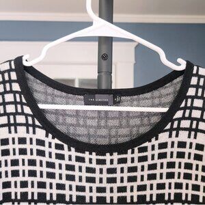 Check out this trendy sweater from The Limited! With its stylish black and white grid pattern, it’s the perfect way to add a little sophistication to your wardrobe. The cool design features black lines crisscrossing to form small squares, giving it a modern and geometric vibe. Plus, the solid black neckline, cuffs, and bottom hem add a sleek touch that really makes the pattern pop. Made from a lightweight, semi-transparent fabric, it’s great for layering over your favorite camisole or blouse. Whether you’re planning a fun night out or just want to keep it casual, this versatile piece is bound to become a go-to favorite!
