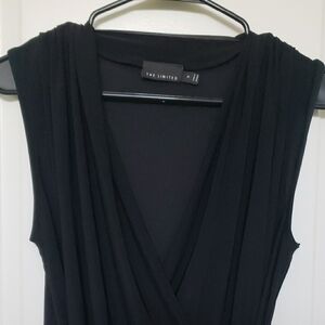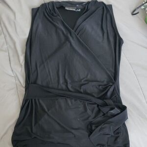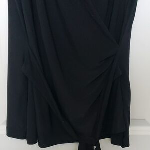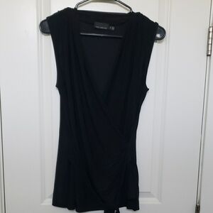 Elegant black wrap blouse. Sleeveless design. Perfect for any occasion.