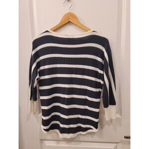 Oversized sweater and white and black stripes is a preppy wardrobe staple. Modest roundneck collar and round hem make this great with oxblood leggings or straight leg jeans. Halfway vintage sweater from the April 2015 collection is perfect for a minimalist office look or casual days with family this Christmas Holiday Season.
