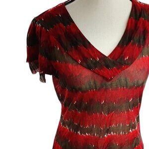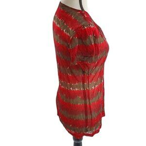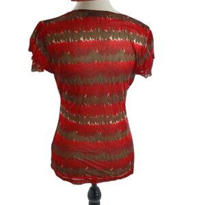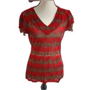 The Limited Blouse Red Fitted Sheer V Neck Short Sleeve Womens Size Medium