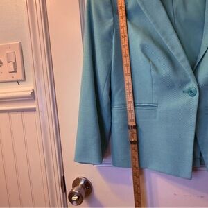 This blue blazer from The Limited features a classic notched lapel and a tailored fit, making it a standout piece for professional settings. Its structured silhouette and smooth fabric offer a polished look, perfect for adding a touch of sophistication to your wardrobe.