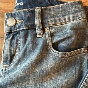 These blue boyfriend jeans from The Limited feature a relaxed fit with a medium-to-light wash, offering a casual and versatile look. The denim showcases natural wear patterns and whiskering, adding character and depth to the classic blue hue. Enjoy the comfort and durability of the traditional twill weave texture.
