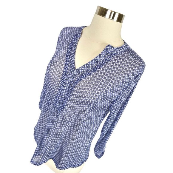 The Limited Blue Clover Printed Henley Blouse - Size Medium