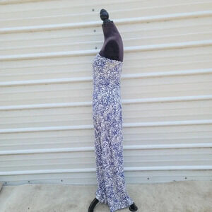 The Limited Blue Floral Strapless Boho Print Lightweight Stretch Maxi Dress Sz M
