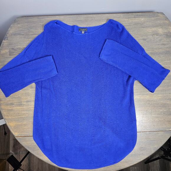 Effortless cobalt blue knit tunic sweater from The Limited Collection. Soft lightweight cashmere-blend knit with relaxed dolman sleeves and a flattering longer rounded hem. Easy everyday layering piece that drapes beautifully.