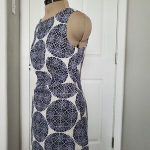 Chic The Limited dress perfect for spring, summer, or casual work events. The above-knee length with side pockets combines style and practicality, while the classic blue and white colorway adds a fresh, polished vibe.