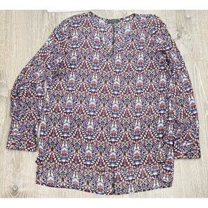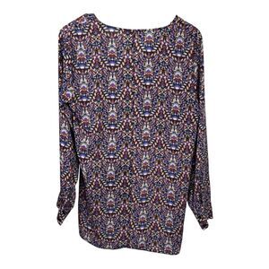 Elevate your wardrobe with this chic womens blouse from The Limited in size Medium. Features a flattering V-neck, long cuff sleeves, and a relaxed pullover style. The lightweight, easy-care fabric is perfect for work or travel packable and wrinkle-friendly. The longer back hem with side slits adds comfort and movement, while the bold boho floral print brings standout style to career or casual looks. Pairs beautifully with slacks, skirts, or jeans for versatile wear. Timeless Limited sophisticated design from their mid-2010s collection perfect for office style, business casual, and desk to dinner it captures the 2010s revival.