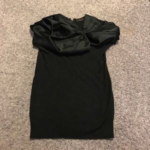 Beautiful bow top sweater. One of my favorites! The silky bow covers from shoulder to shoulder, flat! Zipper back at the top. XS- well loved, with lots of life left.