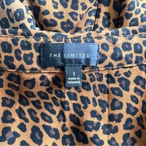 The Limited Brown Leopard Print V Neck Button Down Long Sleeve Blouse
