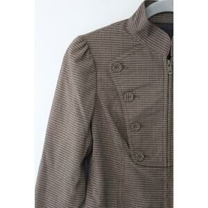 The Limited Brown Womens Mock Neck Cropped Button Zip-up Tweed Blazer XS