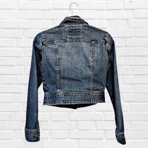 ✨Layer up your off-duty looks with this Denim Jacket from The Limited This long-sleeve denim jacket features a collared neck with a front button design, functional pockets on the side to keep your belongs safe. Tailored in a crop casual fit. The versatile denim jacket is perfect for wearing over a tank top or tee along with any style of pants to complete your chic, laid-back style!
