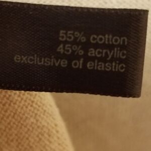 Material: 55% Cotton, 45% Acrylic, Exclusive of Elastic
