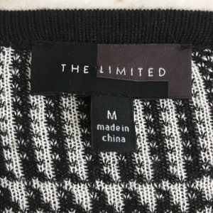 The Limited Women's Medium Black White Geometric Open Front Cardigan Sweater