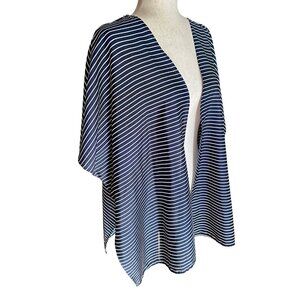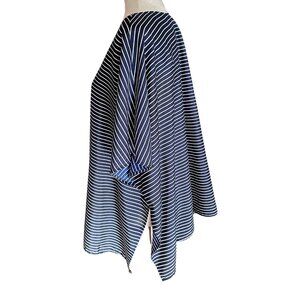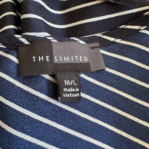 The Limited Cardigan Women M/L Navy Blue White Stripe Open Front Sleeveless