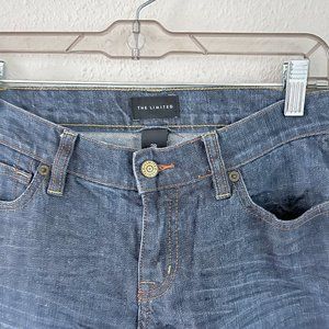 These super-flattering 90s - style jeans from The Limited are in pristine condition and are the ultimate 90s era throwback! They’re fitted through the waist and butt, while being a straight leg fit. They look perfect paired with booties in the fall and a crisp white shirt. They’re dark- so they look chic, refined and put together. They also feature a slight whiskering which looks super flattering when worn.
