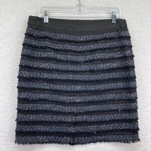 The Limited Collection Women's Skirt Size 10 Black Gray Striped Tweed Fringe Lined