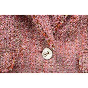 This is a Limited Collection Wool Blend Tweed One-Button Short Blazer that is a size Medium. It is 68% Acrylic, 17% Polyester, and 15% Wool. Laying flat, it measures: Armpit to armpit-18.25" and the Length is 21". It is in great condition.