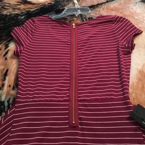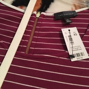 Size Xsmall brand new dress from the limited. Striped A-line dress, flowy bottom and very comfortable. Exposed back zipper in gold, cap sleeves. Comes with a removable, adjustable off white/beige colored skinny belt. 62% Polyester/33% Rayon/5% Spandex. Belt included. Super cute and feminine look.
