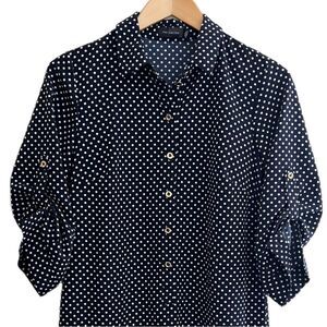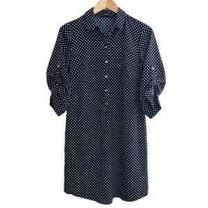 The Limited Dress Navy Blue & White Polka Dot Henley Shift -Size S NWT🏷 classy!
