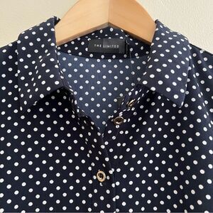 The Limited Navy Blue & White Polka Dot Henley Shift Dress