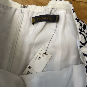 This beautiful dress from The Limited is perfect for any casual or travel occasion. The dress features a geometric pattern in black and white, with a strapless neckline and sleeveless design. It has a zip closure and is made from a combination of polyester, spandex, and cotton, ensuring both comfort and durability.