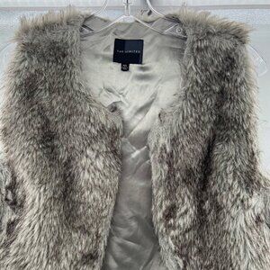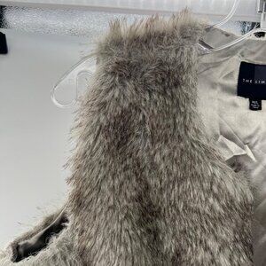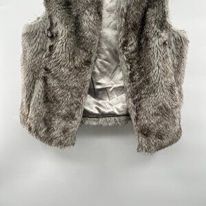 The Limited Faux Fur Vest Open Front Gray/Black Size M/L