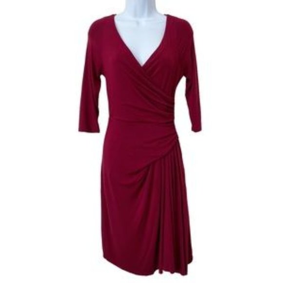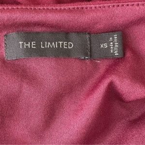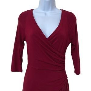 The Limited Faux Wrap Dress XS Womens Burgundy Gathered Draped Waist V Neck