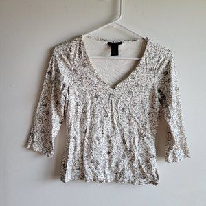 The Limited Floral Top 3/4 Sleeve Beige V-Neck Stretch Size XS EUC