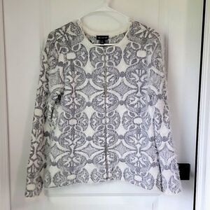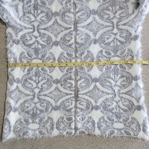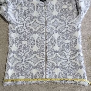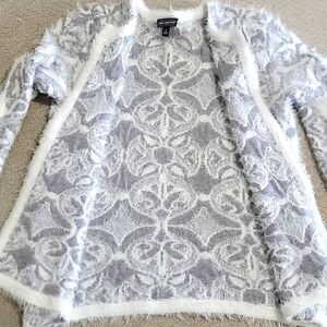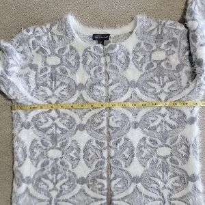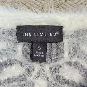 The Limited Gray and White Zippered Long Sleeve Eyelash Cardigan Sweater - Small