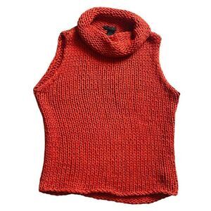 The Limited Hand Knit RARE Mock Neck Sleeveless Sweater/ Vest Orange Fall L AG23