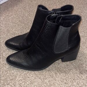 Step out in style with these sleek black textured ankle boots. Perfect for any occasion, these boots offer both comfort and elegance.