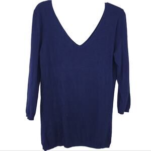 The Limited Knit Sweater Medium Navy Blue Swiss Dot, Deep Vneck, 3/4 Sleeves,